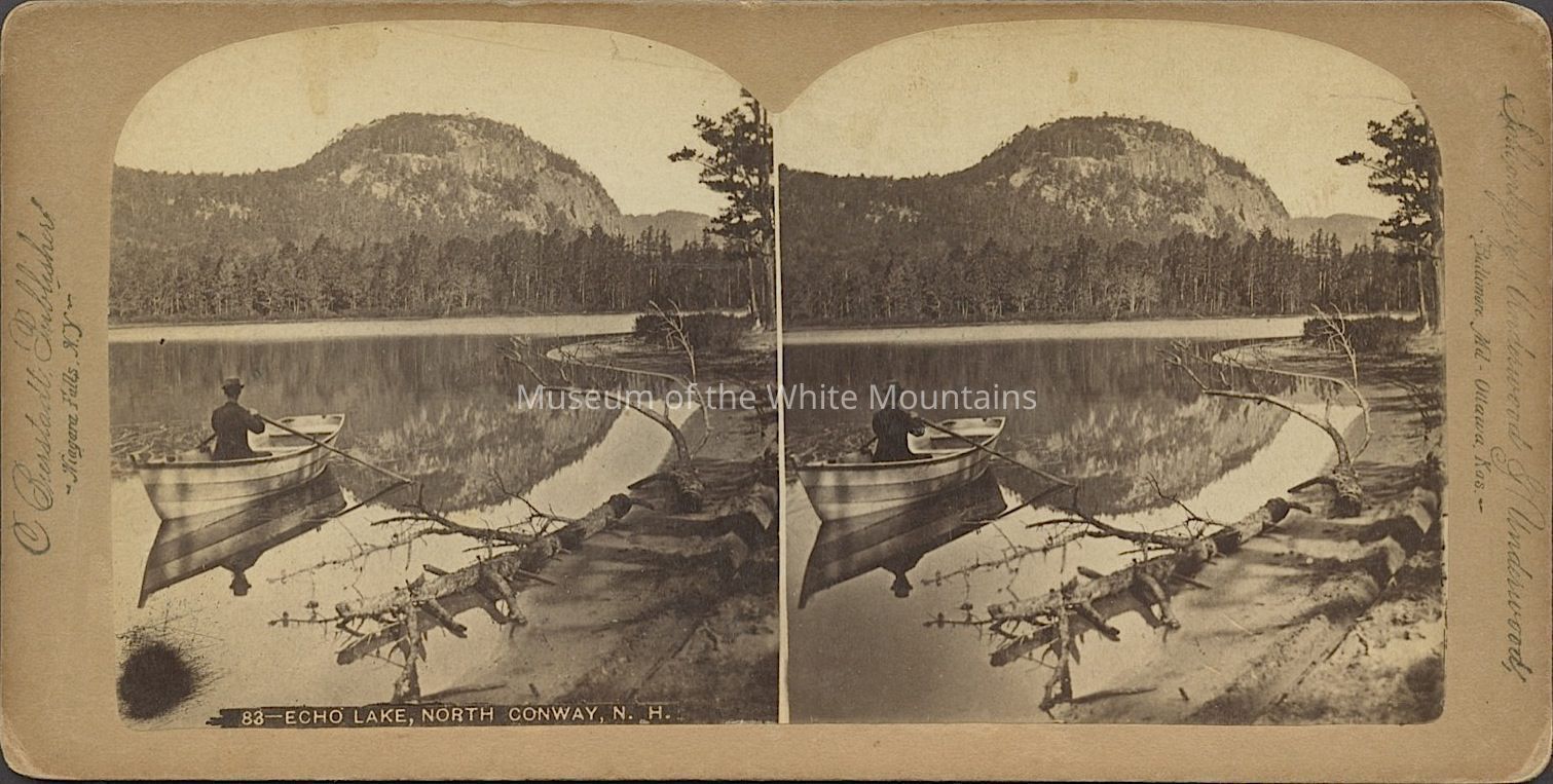 Echo Lake (Grafton county, Carroll county, New Hampshire : lake), North Conway (Carroll county, New Hampshire : inhabited place), White Horse Ledge (Carroll county, New Hampshire : rock), lakes, mountains, beaches, ledges, people, rowboats