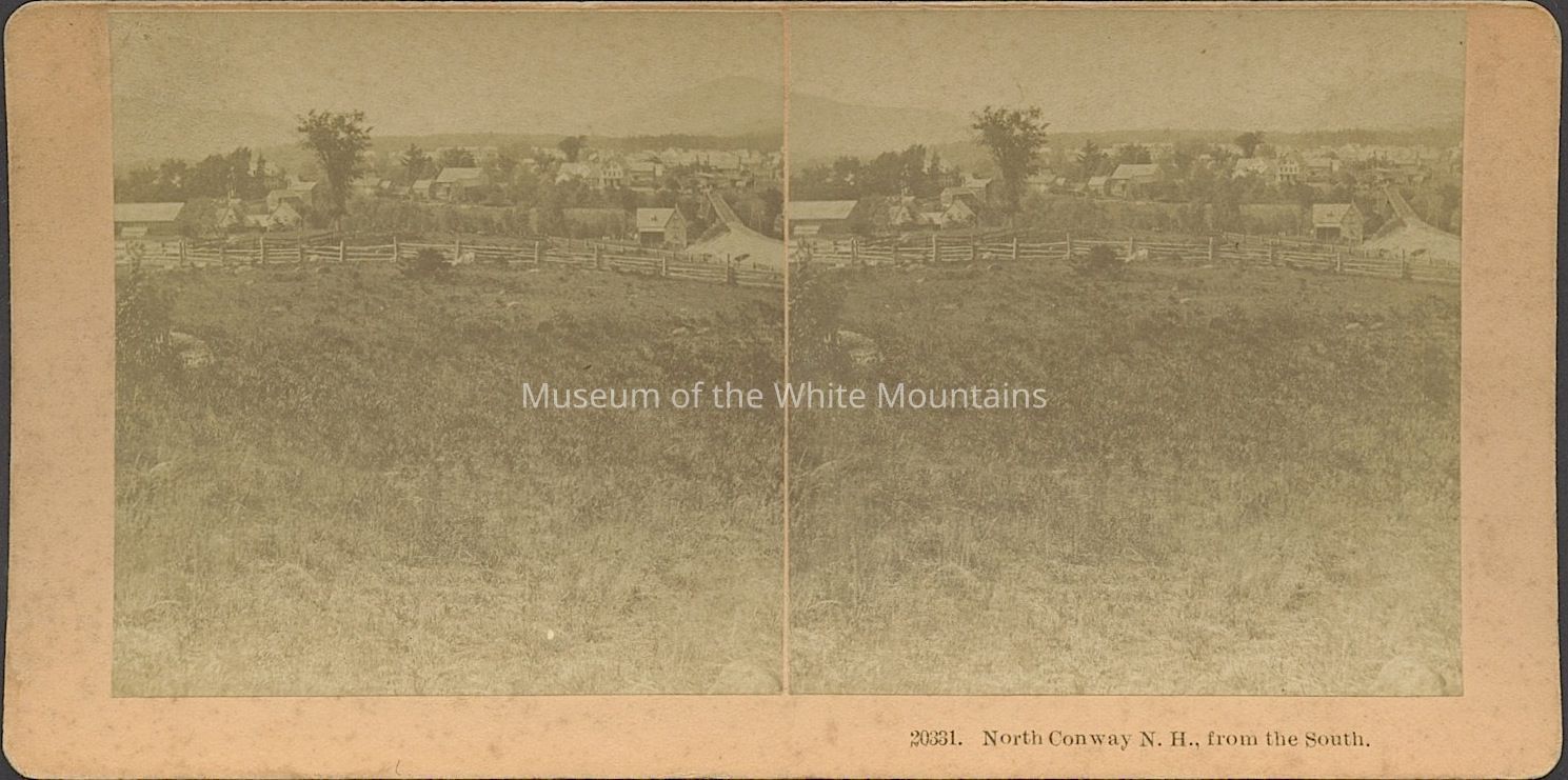 North Conway (Carroll county, New Hampshire : inhabited place), White Mountains (New Hampshire : mountains), Buildings, churches, Boardinghouses, clearings, fences, towns, mountains, barns, farms, dirt roads