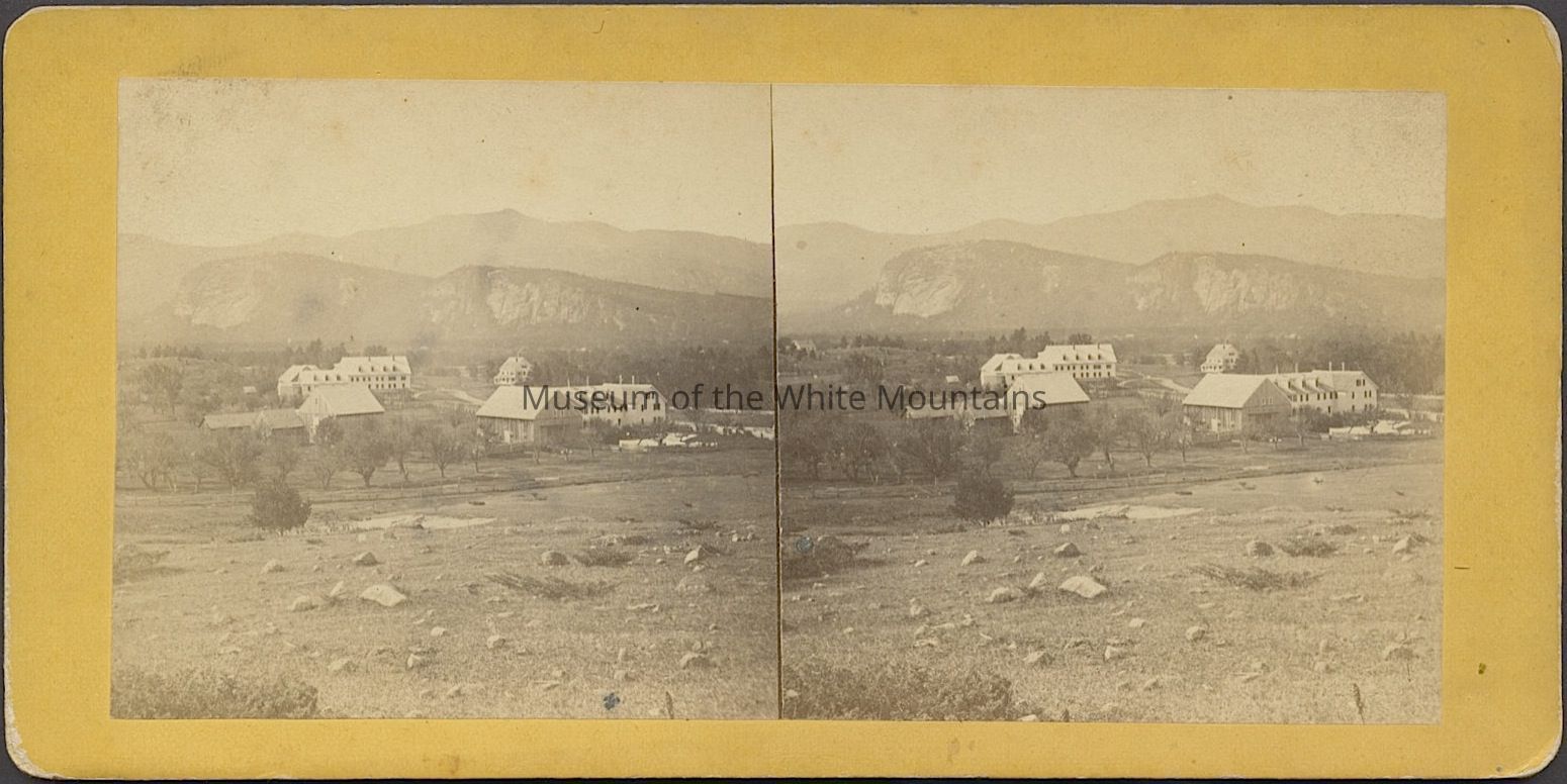 Idlewild (Carroll county, New Hampshire : inhabited place), Intervale House (Carroll county, New Hampshire : inhabited place), Bellevue (Carroll county, New Hampshire : inhabited place), White Horse Ledge (Carroll county, New Hampshire : rock), Cathedral Ledge (Carroll county, New Hampshire : peak), North Conway (Carroll county, New Hampshire : inhabited place), White Mountains (New Hampshire : mountains), Boardinghouses, Buildings, barns, mountains, clearings, ledges, farms