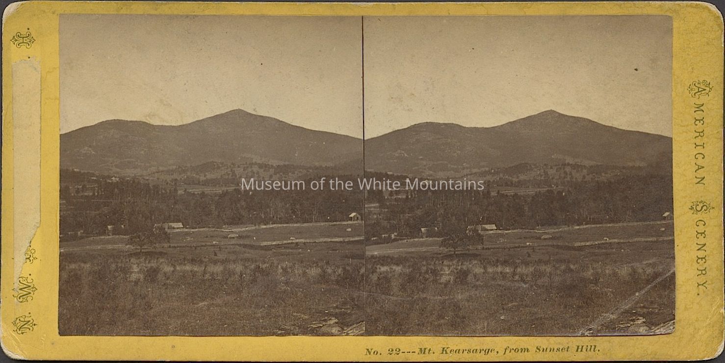 Kearsarge North (Carroll county, New Hampshire : peak), North Conway (Carroll county, New Hampshire : inhabited place), Sunset Hill (Carroll county, New Hampshire : peak), Intervale (Carroll county, New Hampshire : inhabited place), White Mountains (New Hampshire : mountains), mountains, clearings, Buildings, fences,