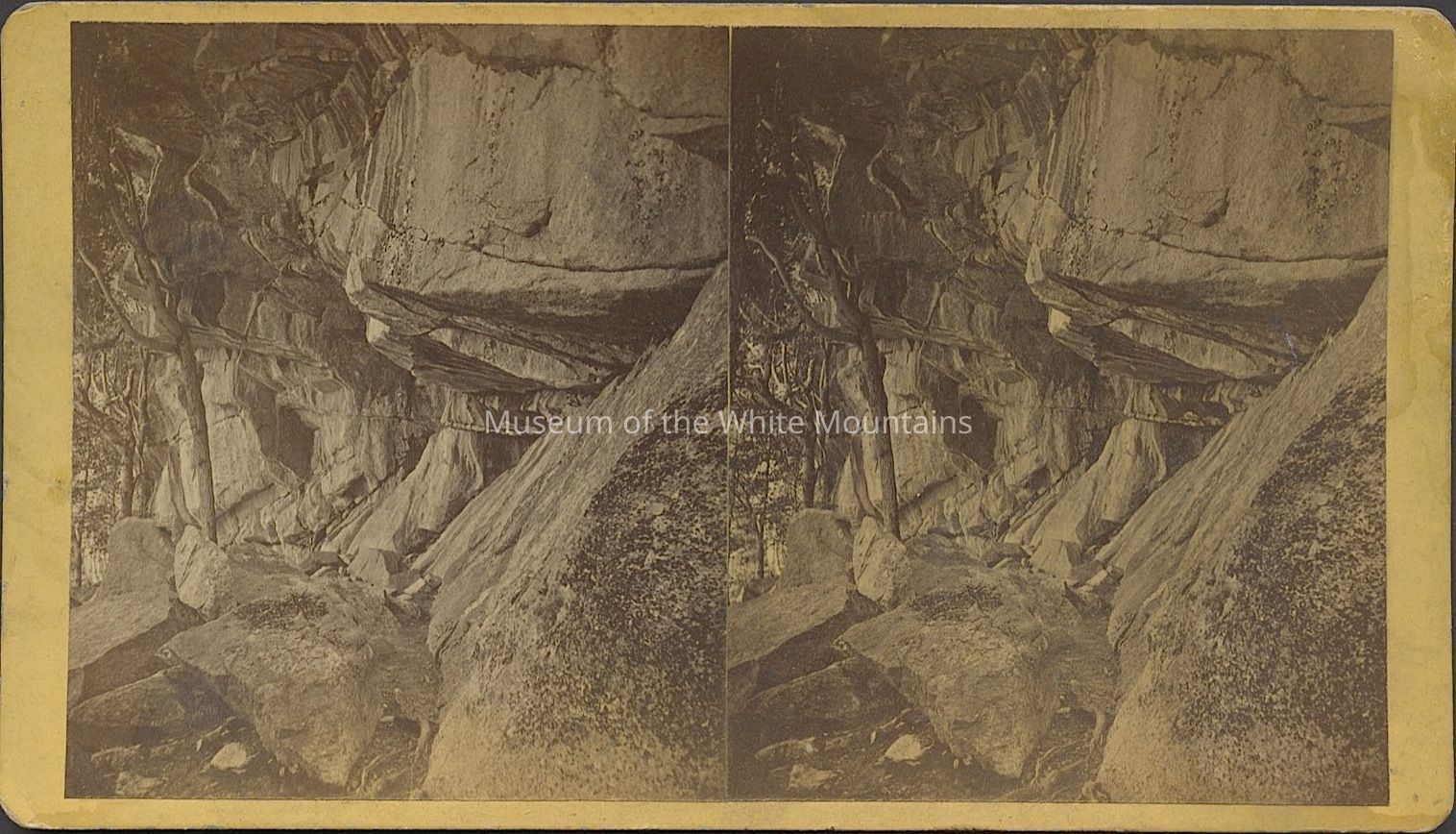 Black and white image of trees growing among large rocks. Part of the "American Scenery" stereoview series. Back Description: Plain. With writing.