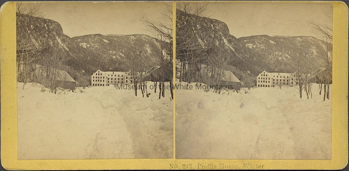 Profile House (Grafton county, New Hampshire : inhabited place), Franconia Notch (Grafton county, New Hampshire : valley), White Mountains (New Hampshire : mountains), winter, snow, Buildings, Boardinghouses, hotels, mountains