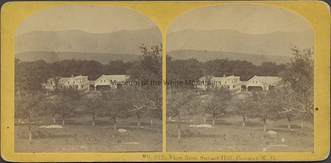 McMillan House (Carroll county, New Hampshire : inhabited place), North Conway (Carroll county, New Hampshire : inhabited place), Sunset Hill (Carroll county, New Hampshire : peak), White Mountains (New Hampshire : mountains), Buildings, Boardinghouses, barns, clearings, mountains