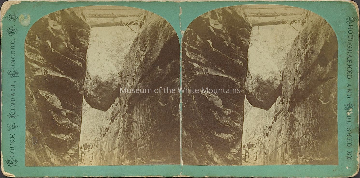 Suspended Boulder (Grafton county, New Hampshire : rock), Flume, The (Grafton county, New Hampshire : valley), Franconia Notch (Grafton county, New Hampshire : valley), White Mountains (New Hampshire : mountains), rocks, boulders, trees,