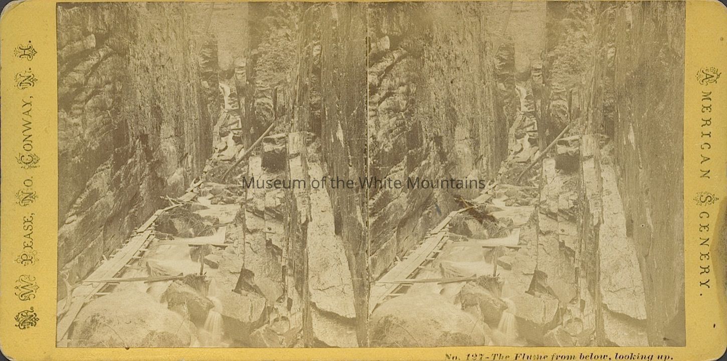 Flume, The (Grafton county, New Hampshire : valley), Franconia (Grafton county, New Hampshire : inhabited place), Suspended Boulder (Grafton county, New Hampshire : rock), White Mountains (New Hampshire : mountains), rocks, streams, gorges, footbridges, boulders
