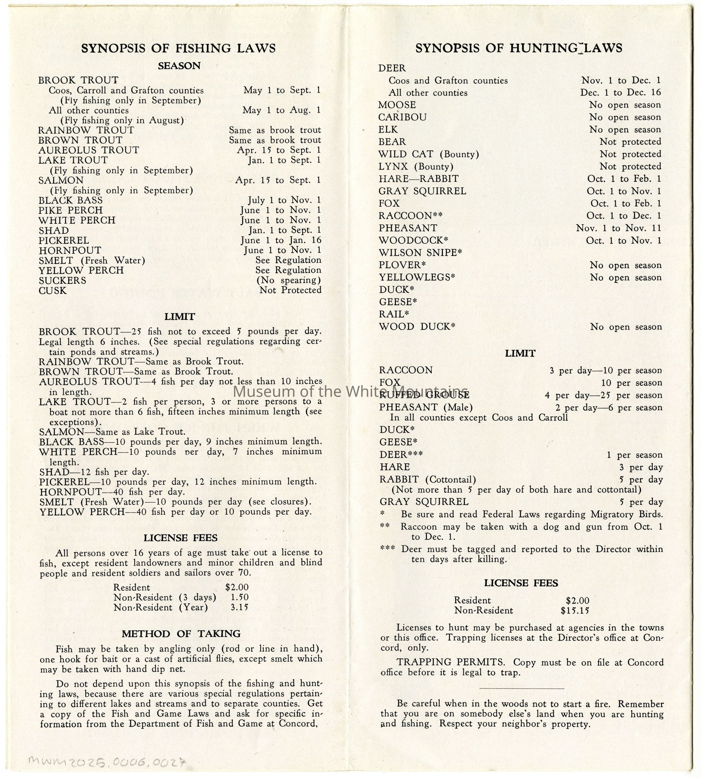 A informational pamphlet on the laws surrounding hunting and fishing in the state of New Hampshire.