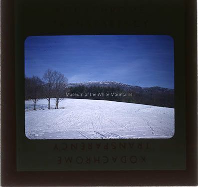 Mount Monadnock is photographed in the background from the view of a snow-covered field. To the left in the midground are some scattered trees and farther back is a thick treeline of what appears to be mostly evergreens. On the back, written in pen is "Mt. Monadnock, 1/51" as well as "A30", "66" and "189" that appears to be crossed off in pencil.
