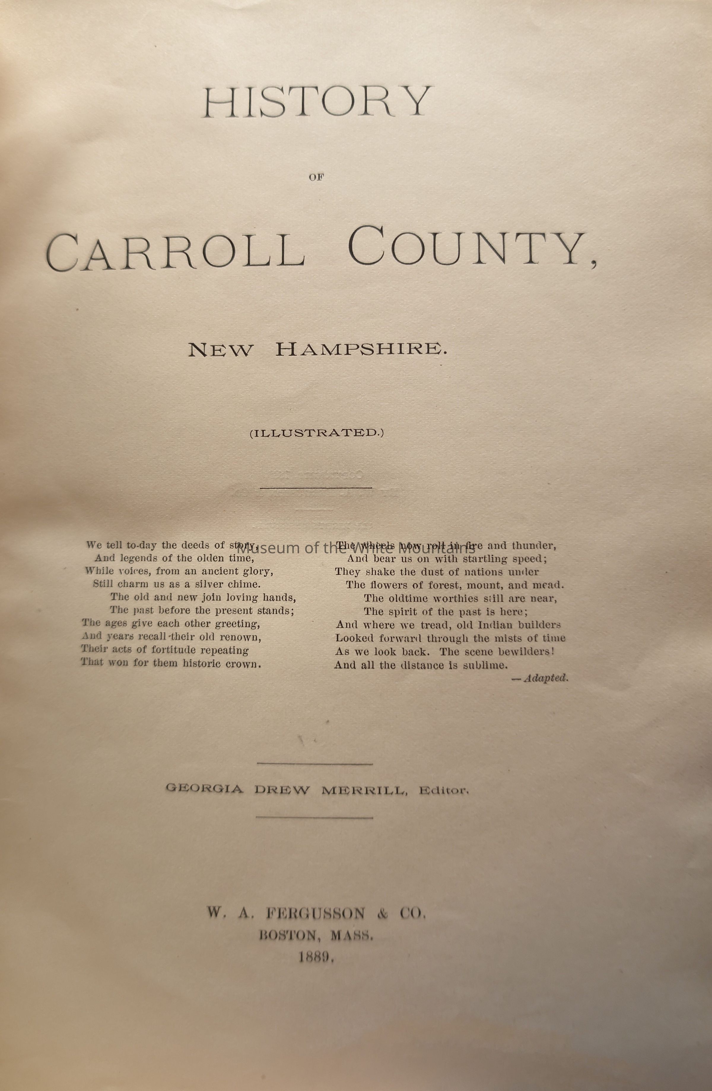 Franconia Notch (Grafton county, New Hampshire : valley), Washington, Mount (Coos county, New Hampshire : mountain), Tuckerman Ravine (Coos county, New Hampshire : valley), Bartlett (Carroll county, New Hampshire : inhabited place), Conway (Carroll county, New Hampshire : inhabited place), Jackson (Carroll county, New Hampshire : inhabited place), Wolfeboro (Carroll county, New Hampshire : inhabited place), Center Harbor (Belknap county, New Hampshire : inhabited place), Sandwich (Carroll county, New Hampshire : inhabited place), Winnipesaukee, Lake (New Hampshire : lake), Chocorua, Mount (Carroll county, New Hampshire : peak), Chocorua Lake (Carroll county, New Hampshire : lake), Kearsarge North (Carroll county, New Hampshire : peak), Willey, Mount (Grafton county, New Hampshire : peak), Echo Lake (Grafton county, Carroll county, New Hampshire : lake), White Horse Ledge (Carroll county, New Hampshire : rock), Diana's Baths (Carroll county, New Hampshire : cascade), Native Americans