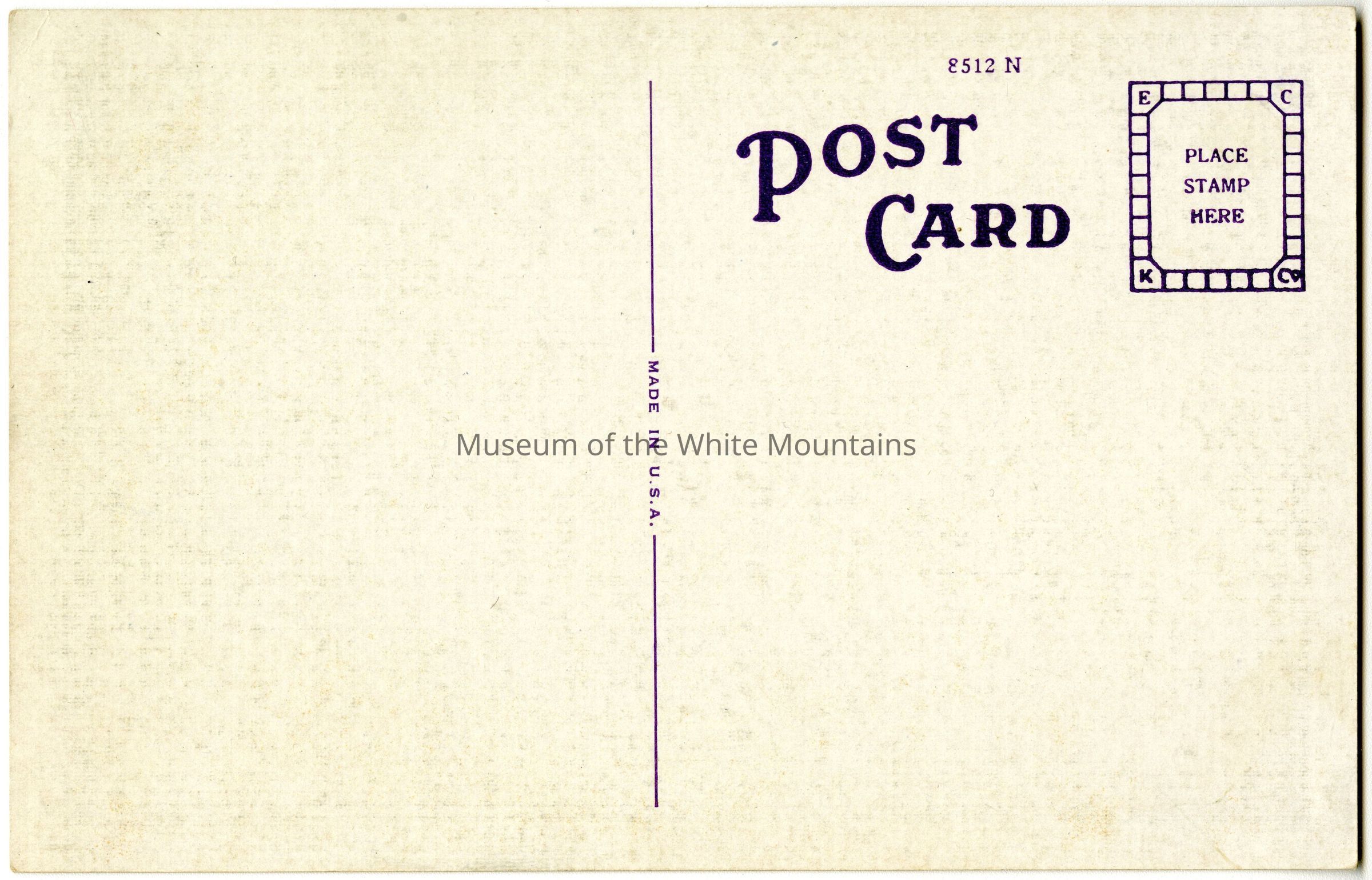 A postcard containing a colored landscape depiction of Lonesome Lake in Franconia Range. This postcard features a typical post card back.Subject