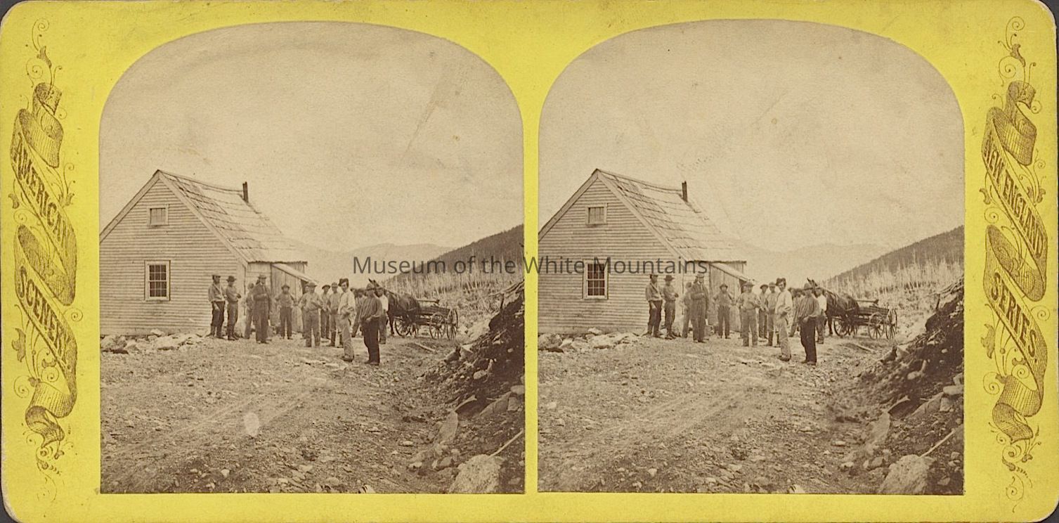 Washington, Mount (Coos county, New Hampshire : mountain), Mount Washington Carriage Road (Coos county, New Hampshire : road), Halfway House (Coos county, New Hampshire : inhabited place), Buildings, people, carts, horses, dirt roads