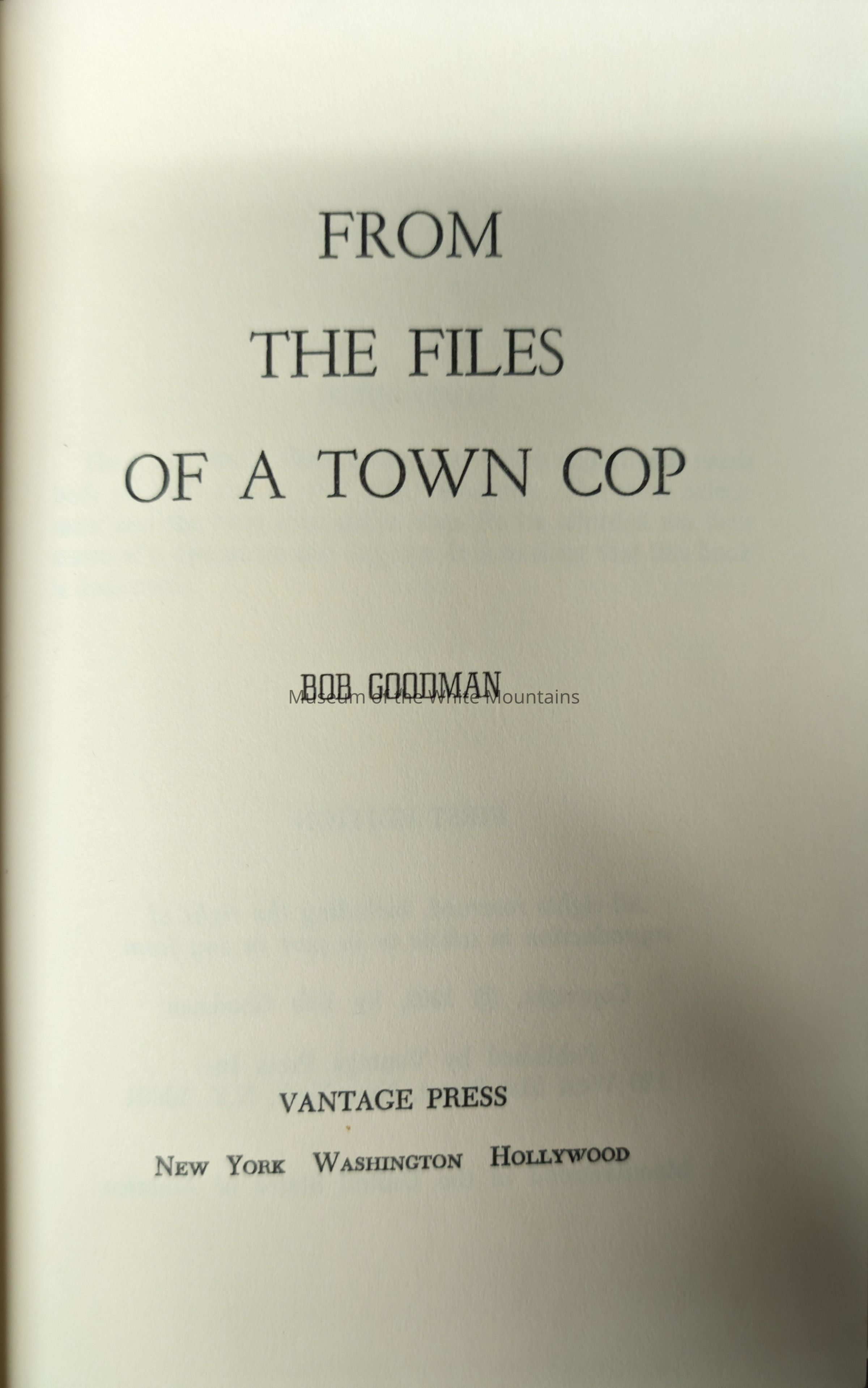 This book contains accounts of Bob Goodman, Jackson New Hampshire's only cop. The book contains peculiar incidents and troubles of the small town from the files of Goodman.