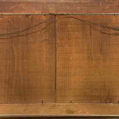 Frame: Wooden gold-gilded frame with leaf-like pattern, four-sided, visible joints