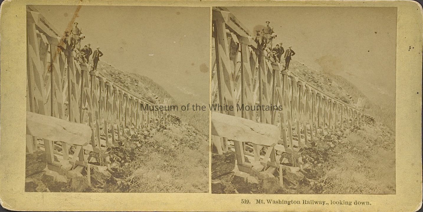 Washington, Mount (Coos county, New Hampshire : mountain), Mount Washington Cog Railway, railroad tracks, people, trestles