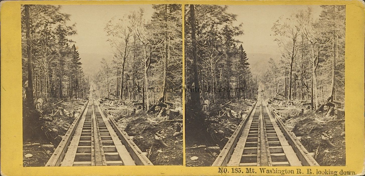Washington, Mount (Coos county, New Hampshire : mountain), Mount Washington Cog Railway, railroad tracks, mountains, tree stumps