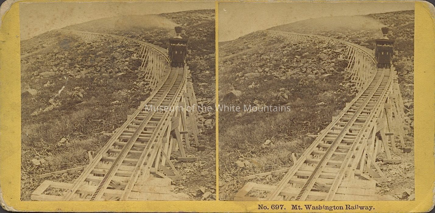 Washington, Mount (Coos county, New Hampshire : mountain), Mount Washington Cog Railway, railroad tracks, railroad engines, trains, trestles