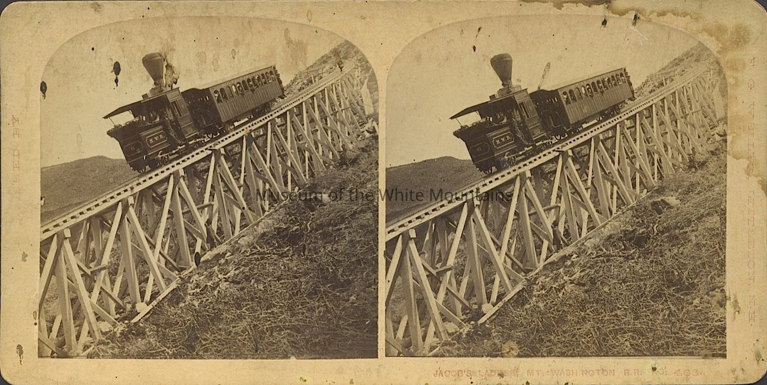 Washington, Mount (Coos county, New Hampshire : mountain), Mount Washington Cog Railway, Engine 'Tip-Top', Jacob's Ladder (Coos county, New Hampshire : structure), Manchester Locomotive Works, Railroad passenger Automobiles