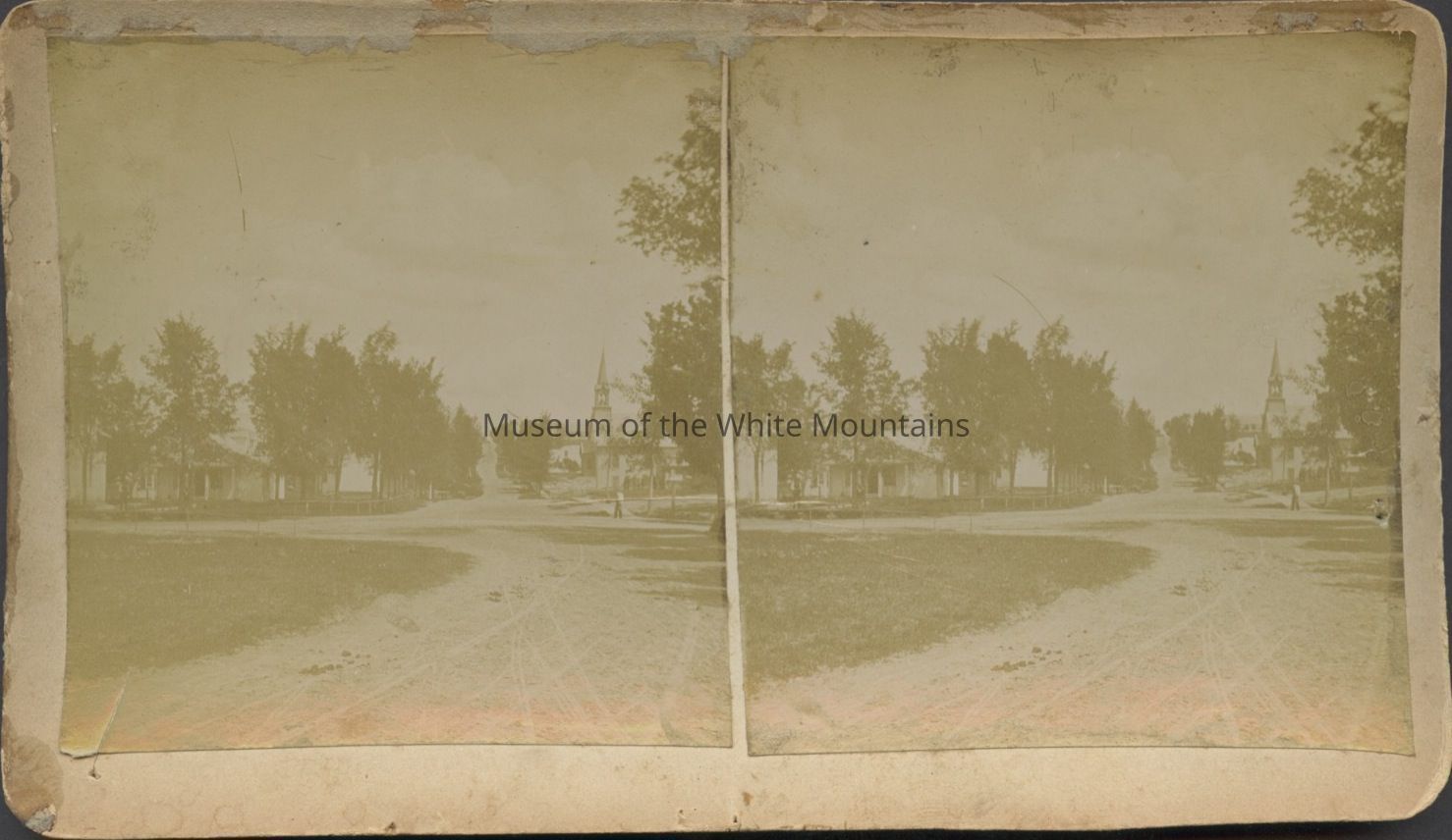 Buildings, Churches, People, Trees, Roads, Dirt roads, Steeples, Town life
