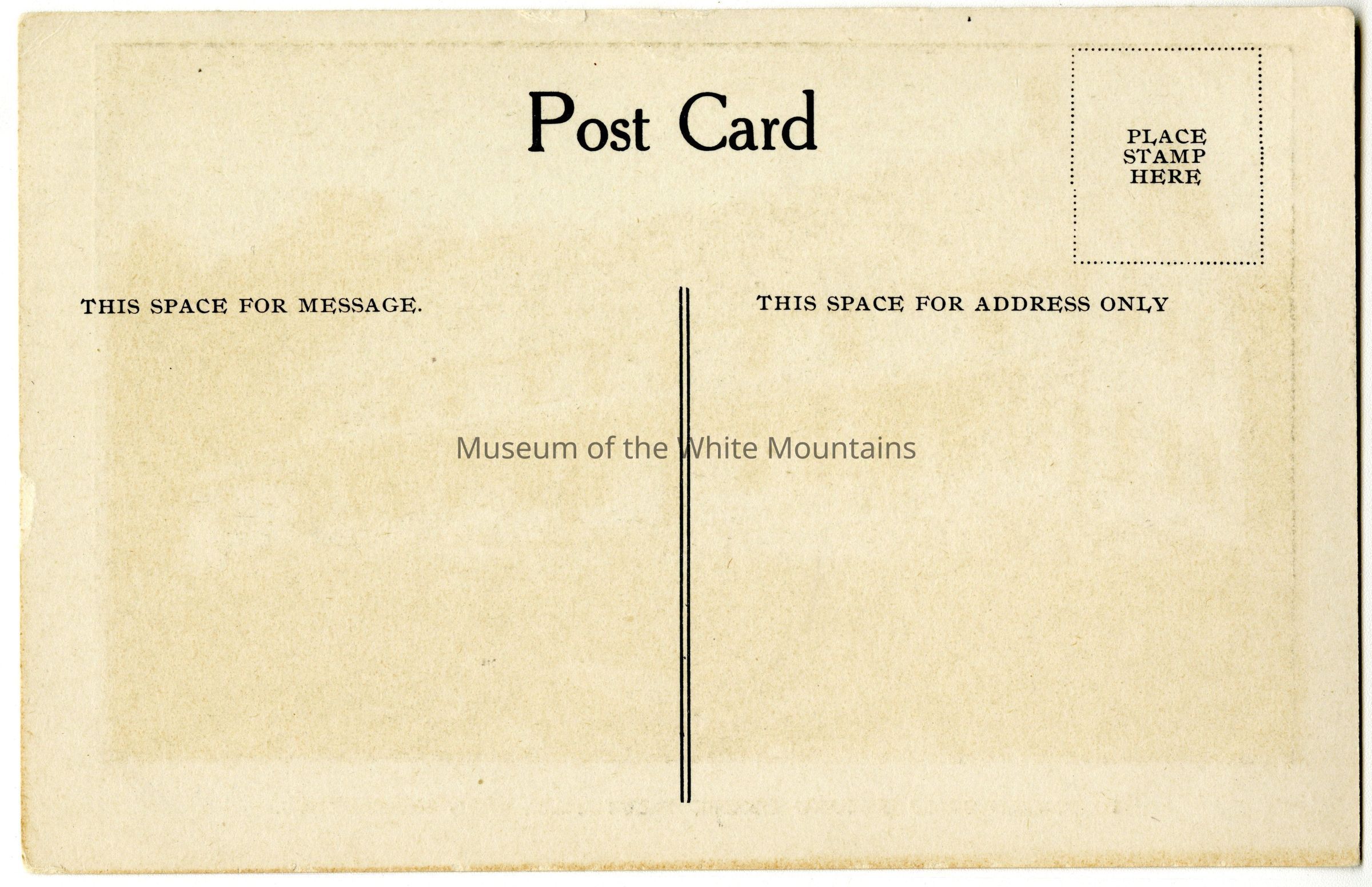 A Landscape photograph postcard featuring a black and white photograph of Idlewild camp on Second Connecticut Lake in New Hampshire. This is a typical divided back postcard.Subject