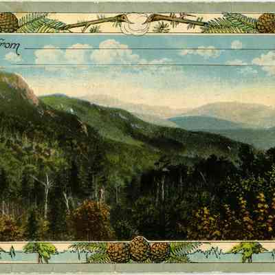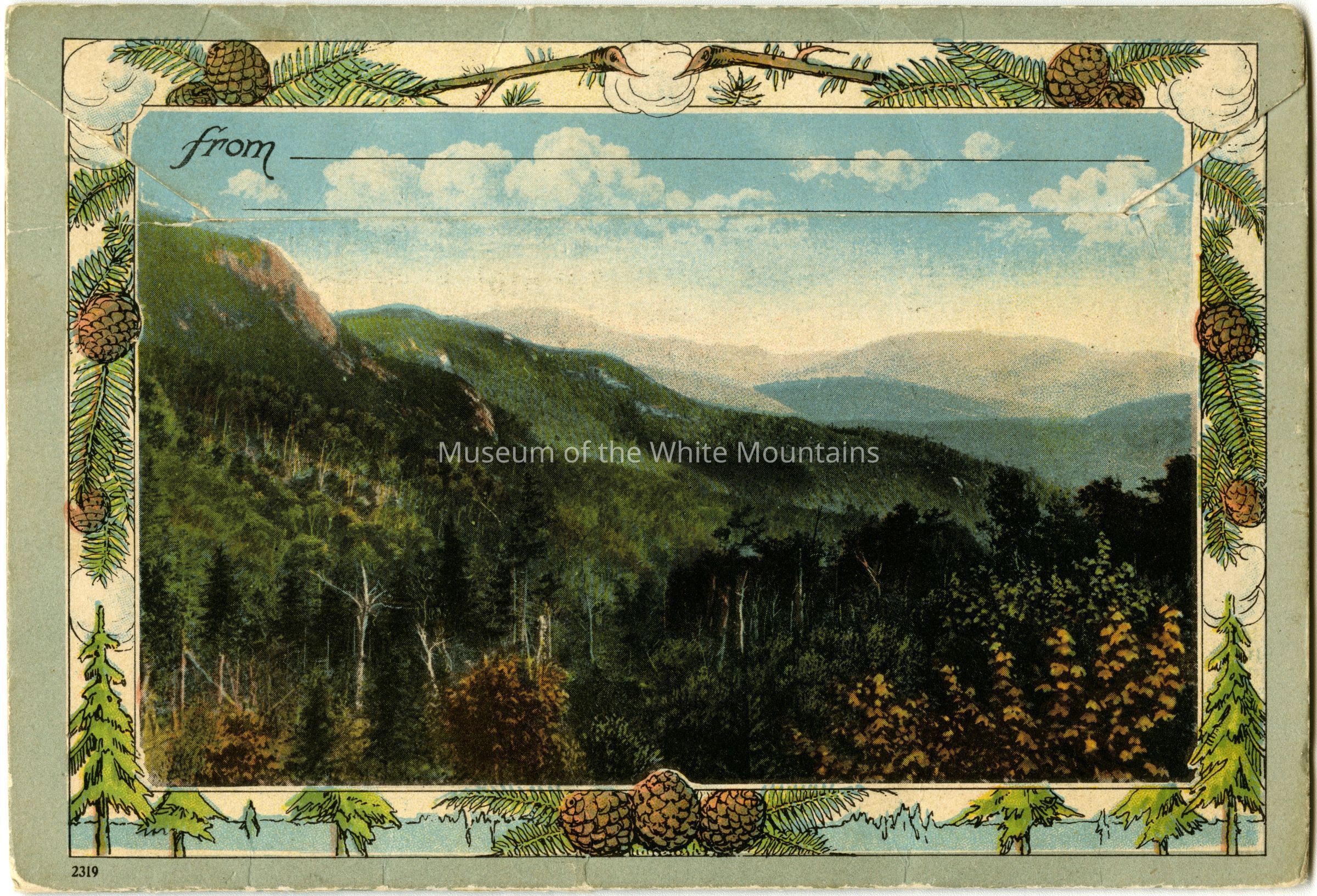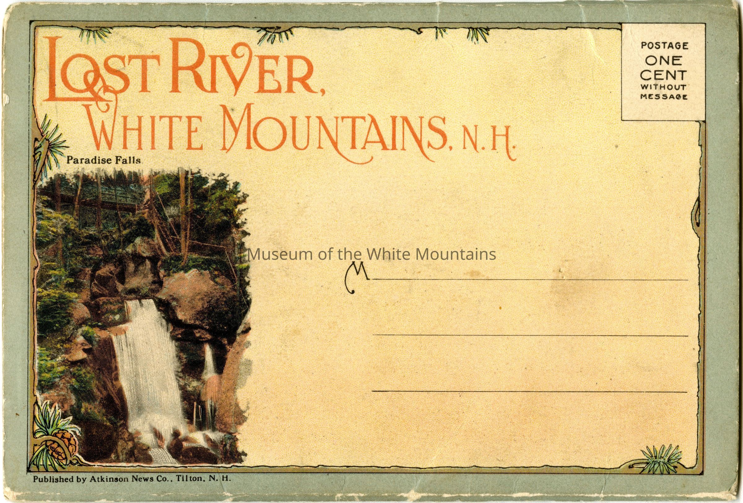 A postcard booklet containing of broken accordion of images pertaining to Lost River alongside a brief description of the site.