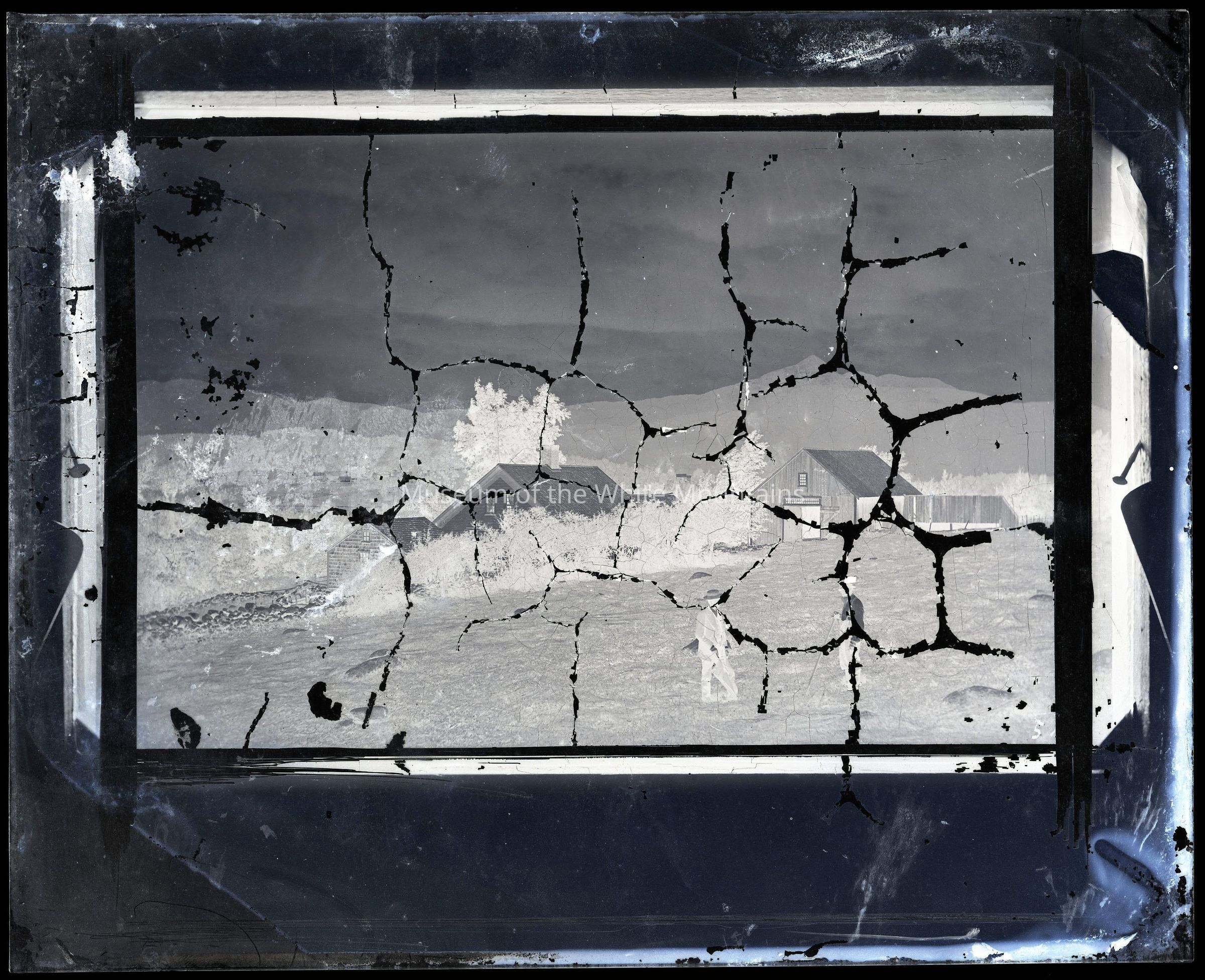Mountains, Men, Houses, Bushes, Barns, Fields