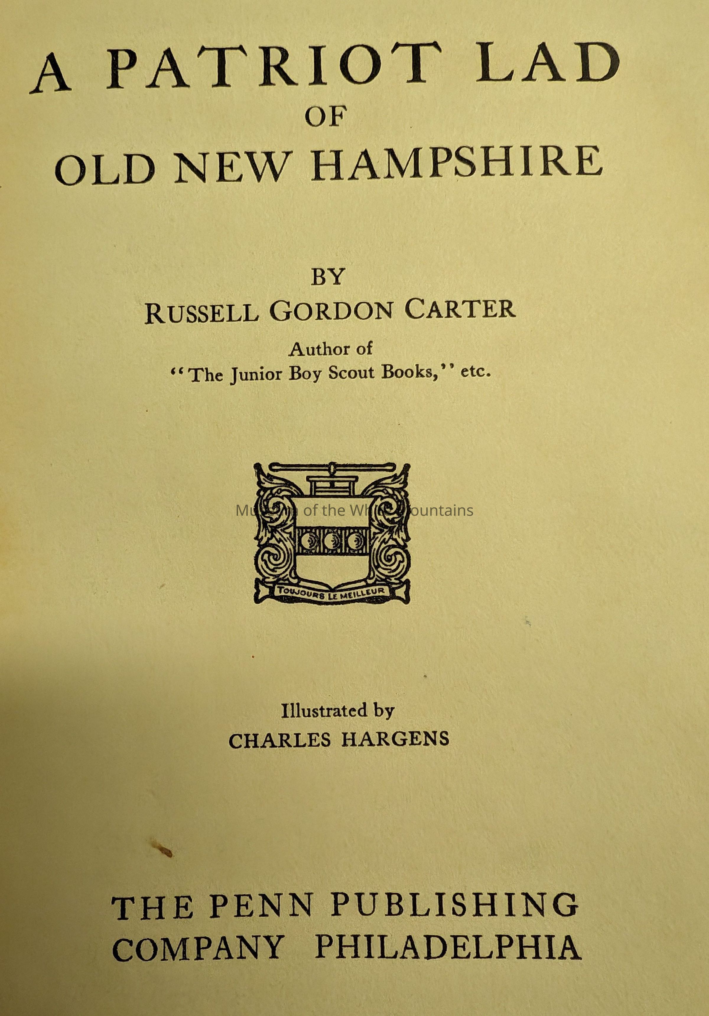 A patriot lad of old New Hampshire, by Russell Gordon Carter...illustrated by Charles Hargens.Entry/Object ID