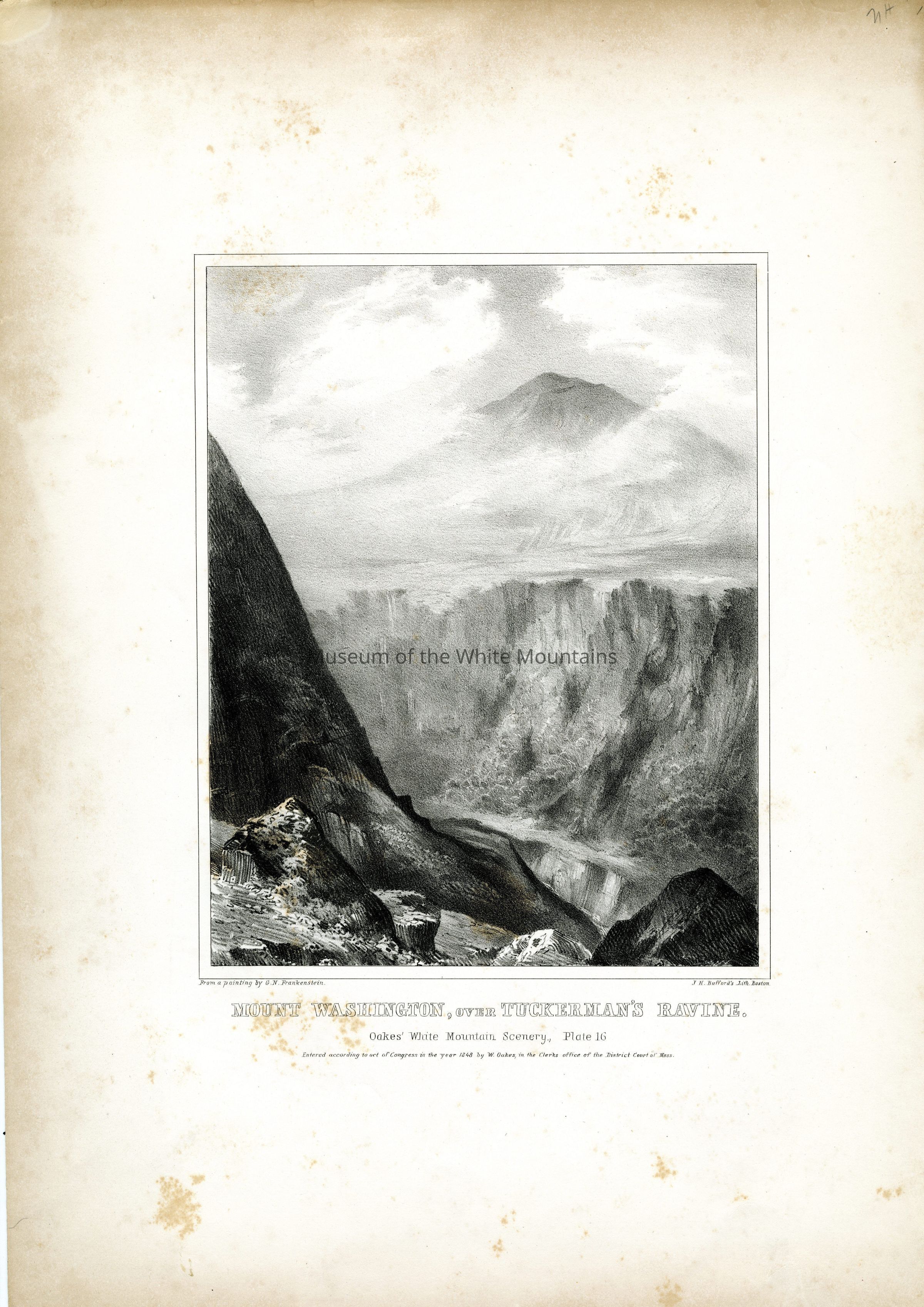 MOUNT WASHINGTON, OVER TUCKERMAN'S RAVINE. / Oakes' White Mountain Scenery, Plate 16 / Entered according to act of Congress in the year 1848 by W. Oakes in the Clerks office of the District Court of Massachusetts.Type