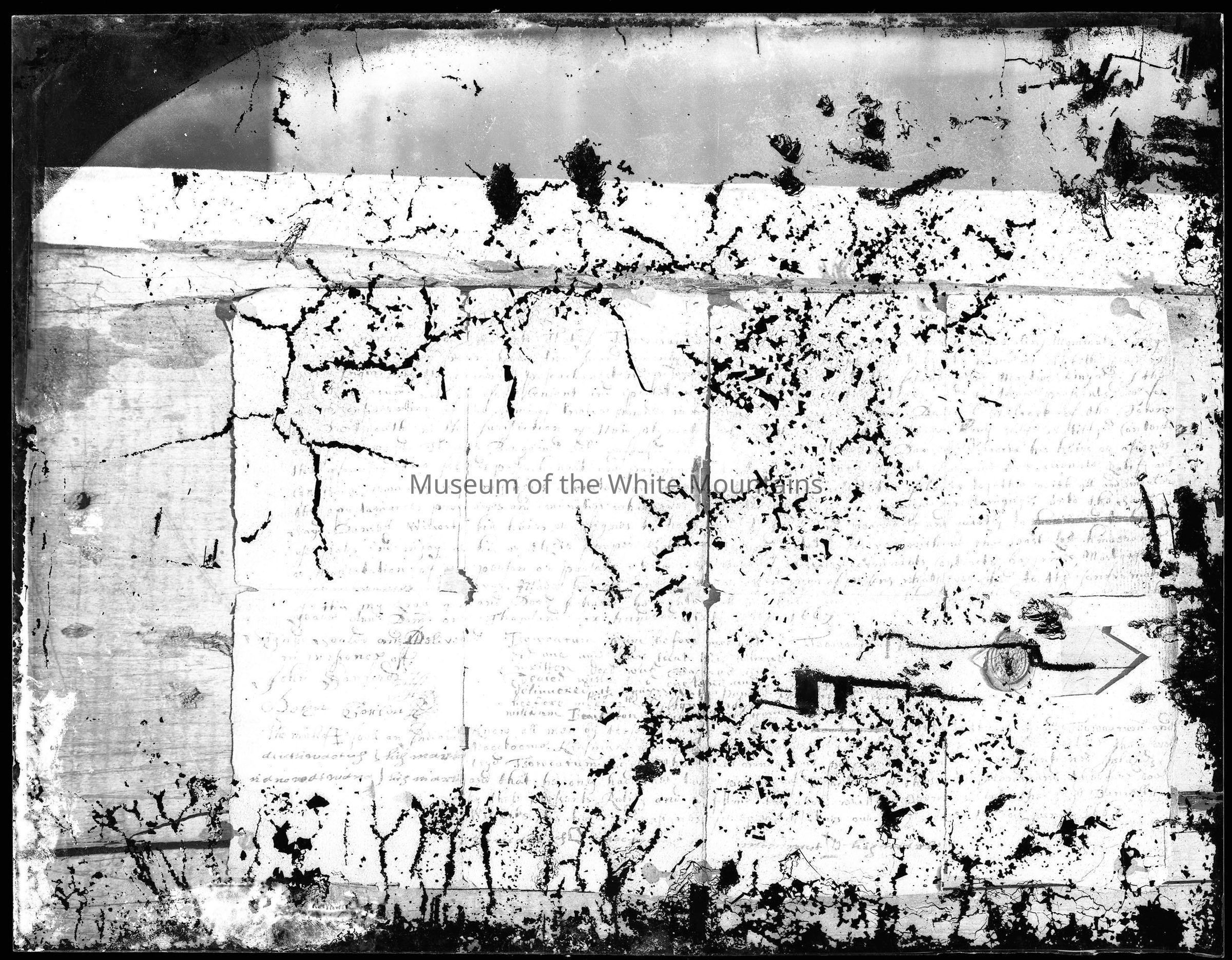 There are a lot of cracks in the emulsion layer as well as some staining. The writing on the image is difficult to discern.