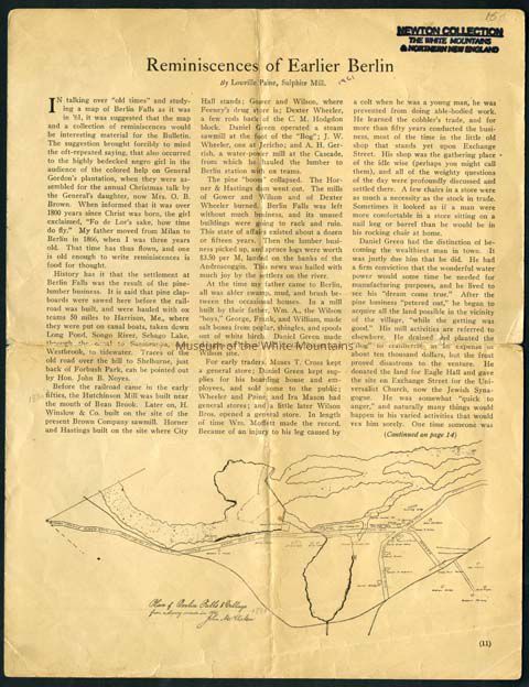 This is an article reminiscent from the Brown Bulletin about Berlin, New Hampshire's past.