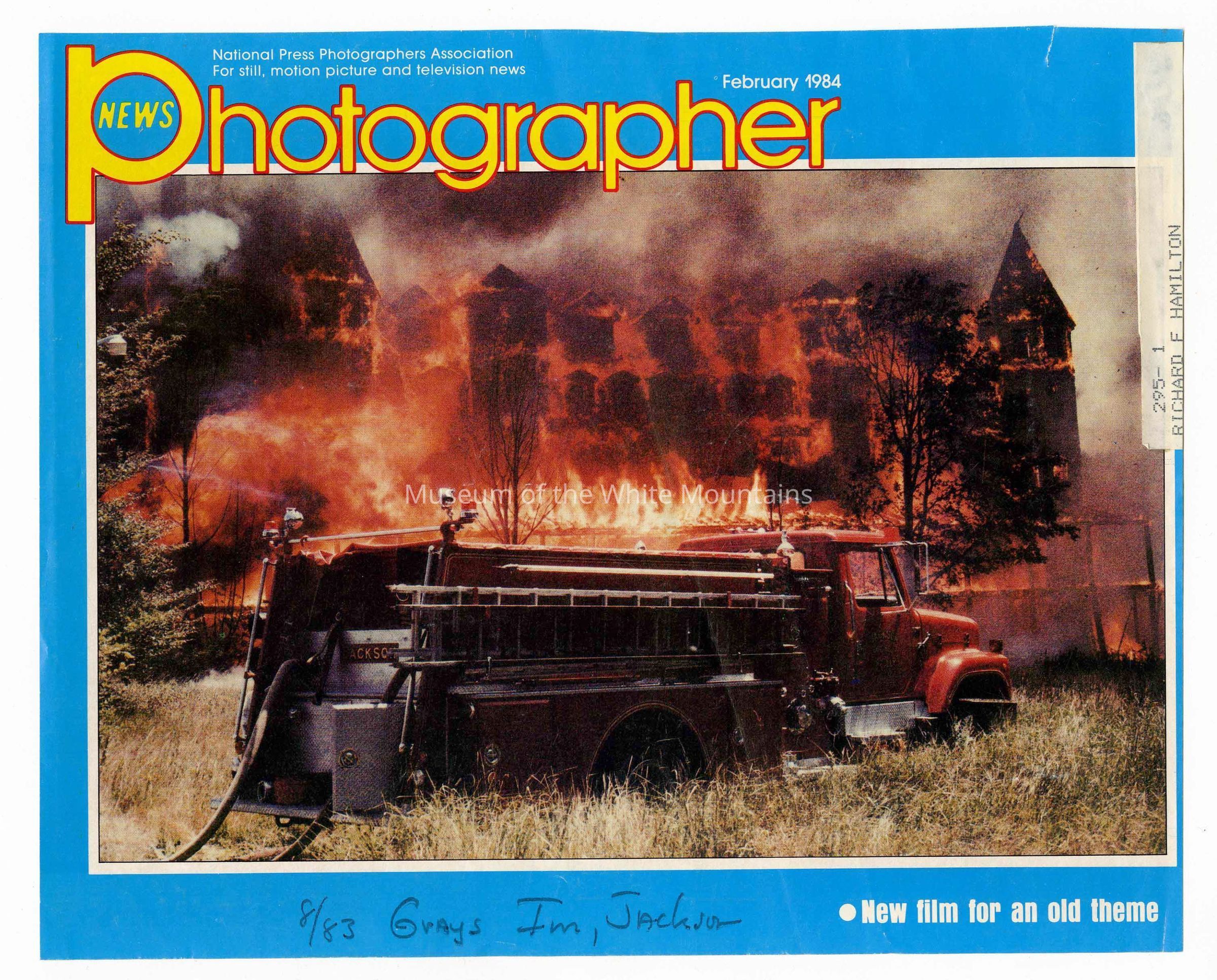 View of Grays Inn burning with a Jackson firetruck infront. News photo.