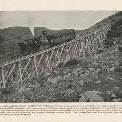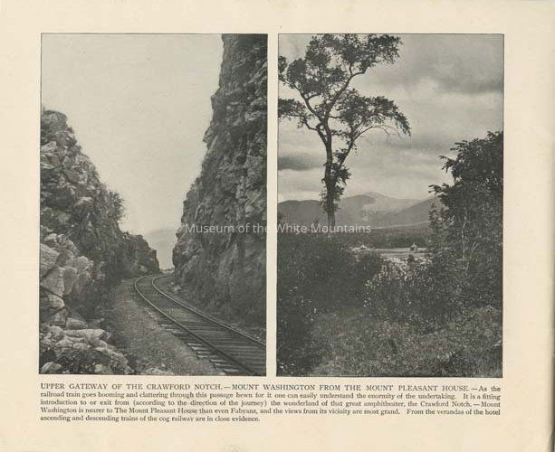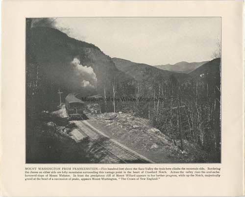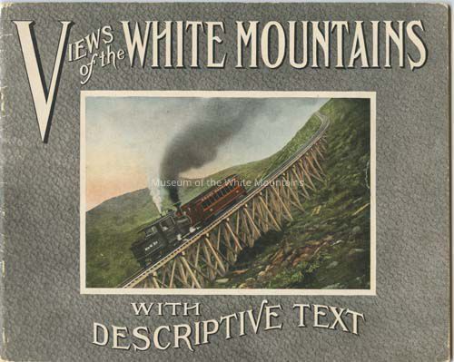 Souvenir booklets, Tourism, Railroads, Railways, Scenic overlooks, Booklets, Trestles, Photographs, Buildings, People, Trains, Notches, Waterfalls, Dirt roads, Railroad platforms, Lakes & ponds, Hotels, Souvenir albums, Railroad stationsSearch Terms