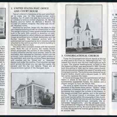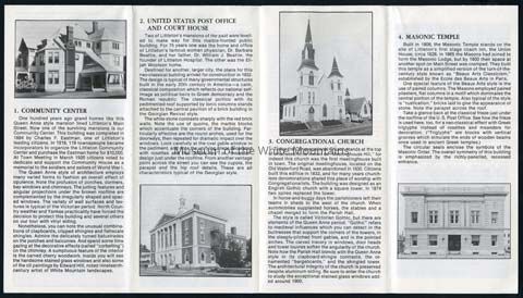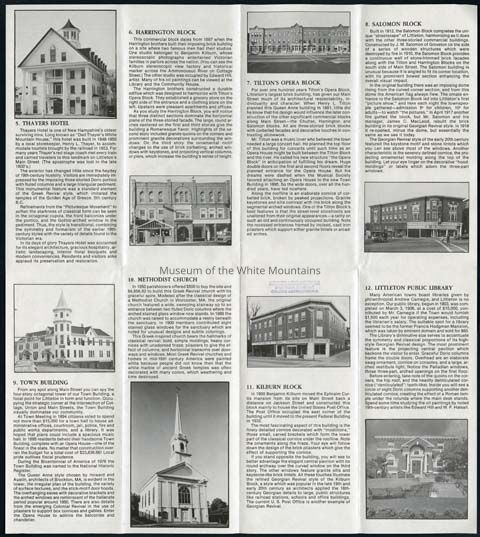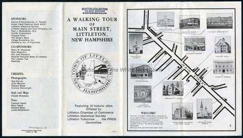 This is a guide to the walking tour of Littleton, New Hampshire. It outlines the buildings on Main Street and includes some information on each of the historic buildings on the street and where to locate each one.Collection