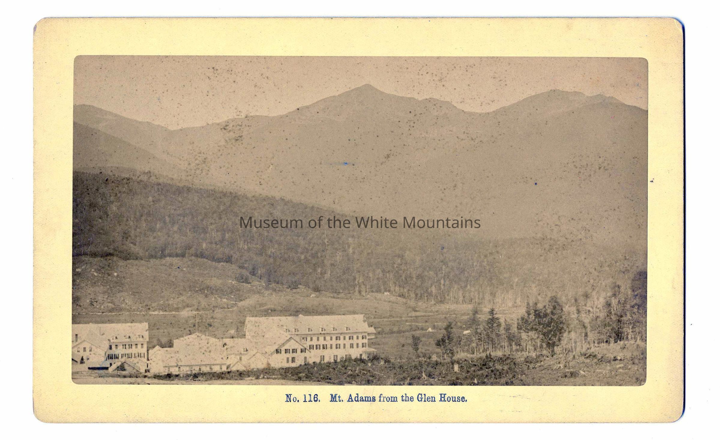 View of main building of Glen house in corner of image. Majority of print depicting Mt Adams in the distance.