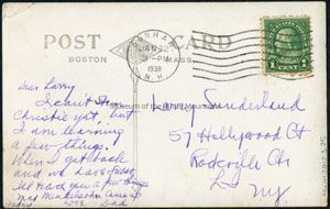 Back Description: Back is divided and includes a handwritten message, postmark, and postage stamp.