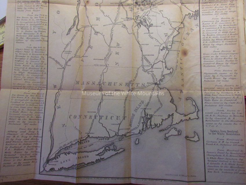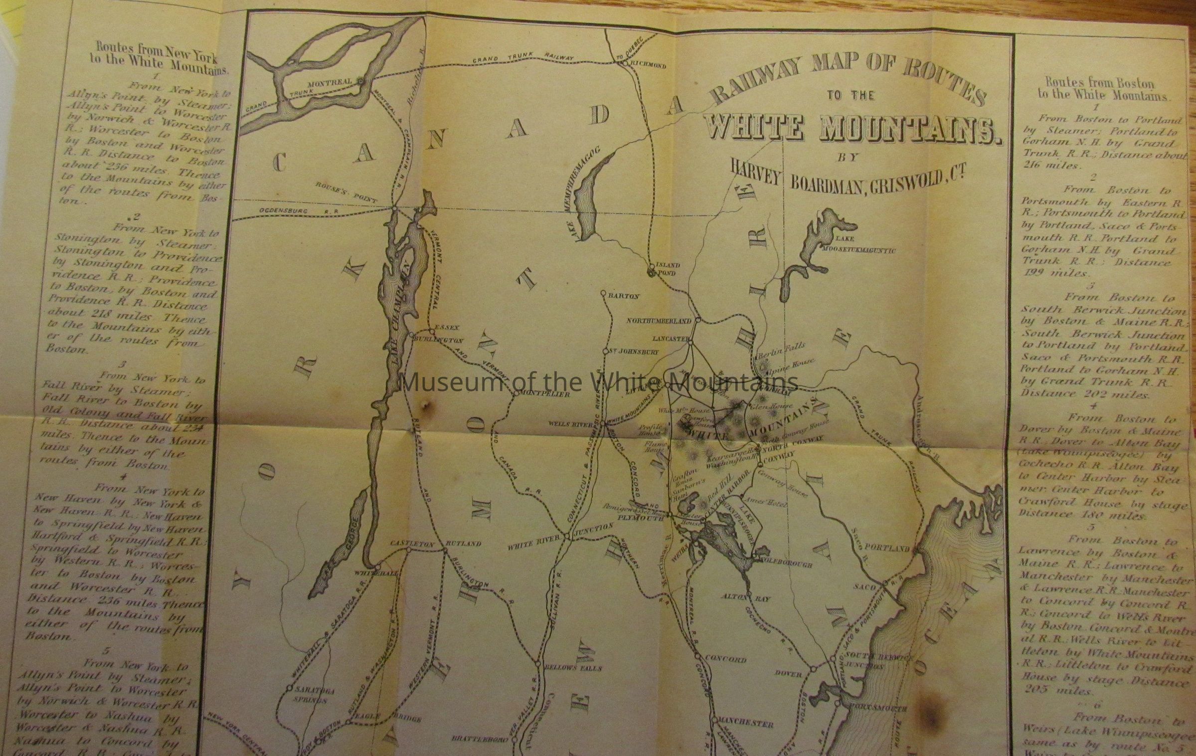 Fold-out map within "A Complete and Accurate Guide to and around the White Mountains," featuring railroad routes.Collection