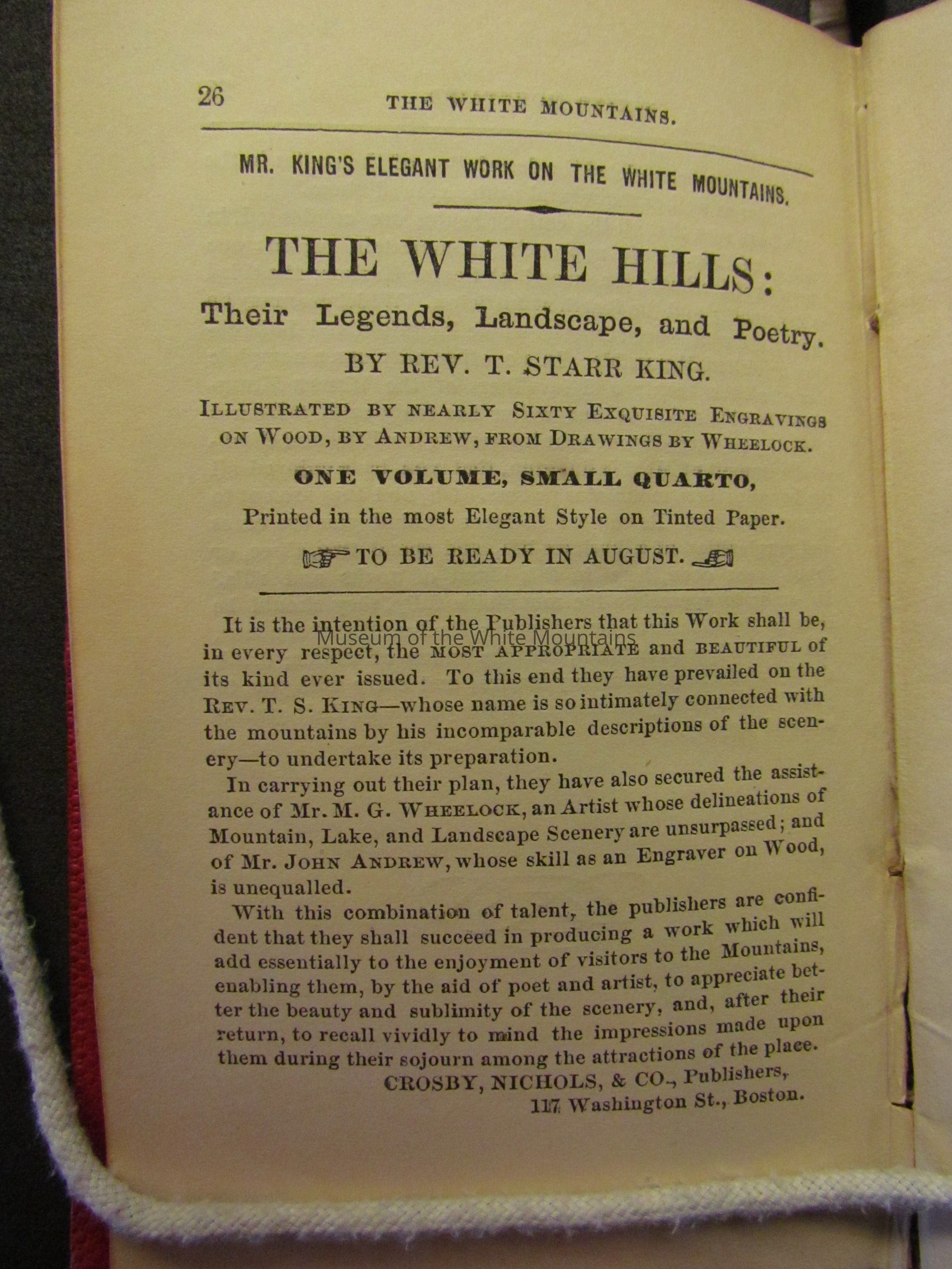 Starr King ad in A Complete and Accurate Guide... Advertisement for T.Starr. King's "The White Hills," within "A Complete and Accurate Guide to and around the White Mountains."
