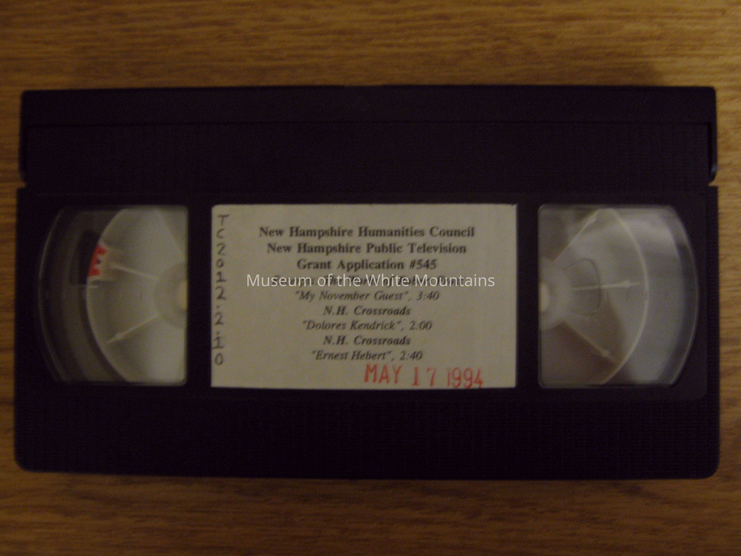 New Hampshire Humanities Council & New Hampshire Public Televevision: Grant Application #545, this video includes an excerpt from the infamous poet, Robert Frost titled "My November Guest". Also included are two editions of New Hampshire Crossroads titled "Dolores Kendrick" & " Ernest Hebert".Collection