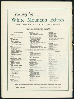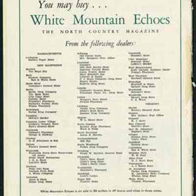 Beecher Falls Furniture, Brown Paper Company, Coos (New Hampshire : county), Jefferson (Coos county, New Hampshire : inhabited place), Lancaster (Coos county, New Hampshire : inhabited place), New Hampshire (United States : state), New Hampshire Fish and Game Department, Ossipee (Carroll county, New Hampshire : inhabited place), Rural Free Delivery Service, Sugar Hill (Grafton county, New Hampshire : inhabited place), White Mountain National Forest, White Mountain Riding Club, Inc., Whitefield (Coos county, New Hampshire : inhabited place), Wild River (Oxford county, Maine : river), Woodsville (Grafton county, New Hampshire : inhabited place), Indians of North America, Native Americans