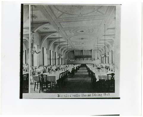 Interior view of the dining room at the first Profile House. The room had 23-foot-high ceilings and had a capacity of 500 people. Scanned from a stereograph.
