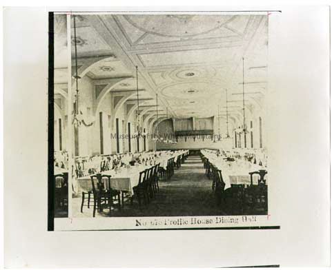 Interior view of the dining room at the first Profile House. The room had 23-foot-high ceilings and had a capacity of 500 people. Scanned from a stereograph.