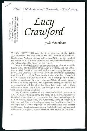 This is a photocopy of an article from "Appalachia" journal from June, 1996 about Lucy Crawford.