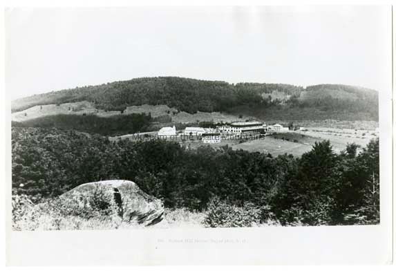 Exterior view of the Sunset Hill House and it's outbuildings, taken from a hill across from the hotel.