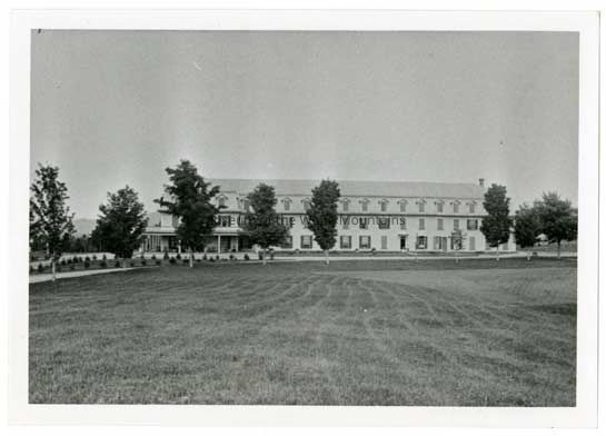 Exterior view of the Sunset Hill House and the large lawn in front of the hotel.