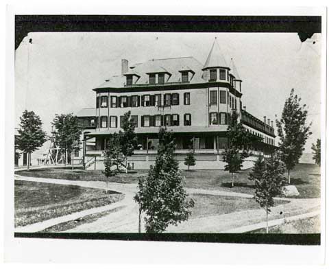 Exterior view of the Sunset Hill House, including the octagonal corner towers, which were added in 1900-01. 2 copies