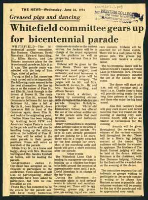 This is an article about Whitefield, NH and the bicentennial celebration in 1974.Collection