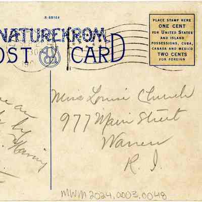 Addressee: Miss Louis Church, 977 Main Street, Warren, R.I.Subject