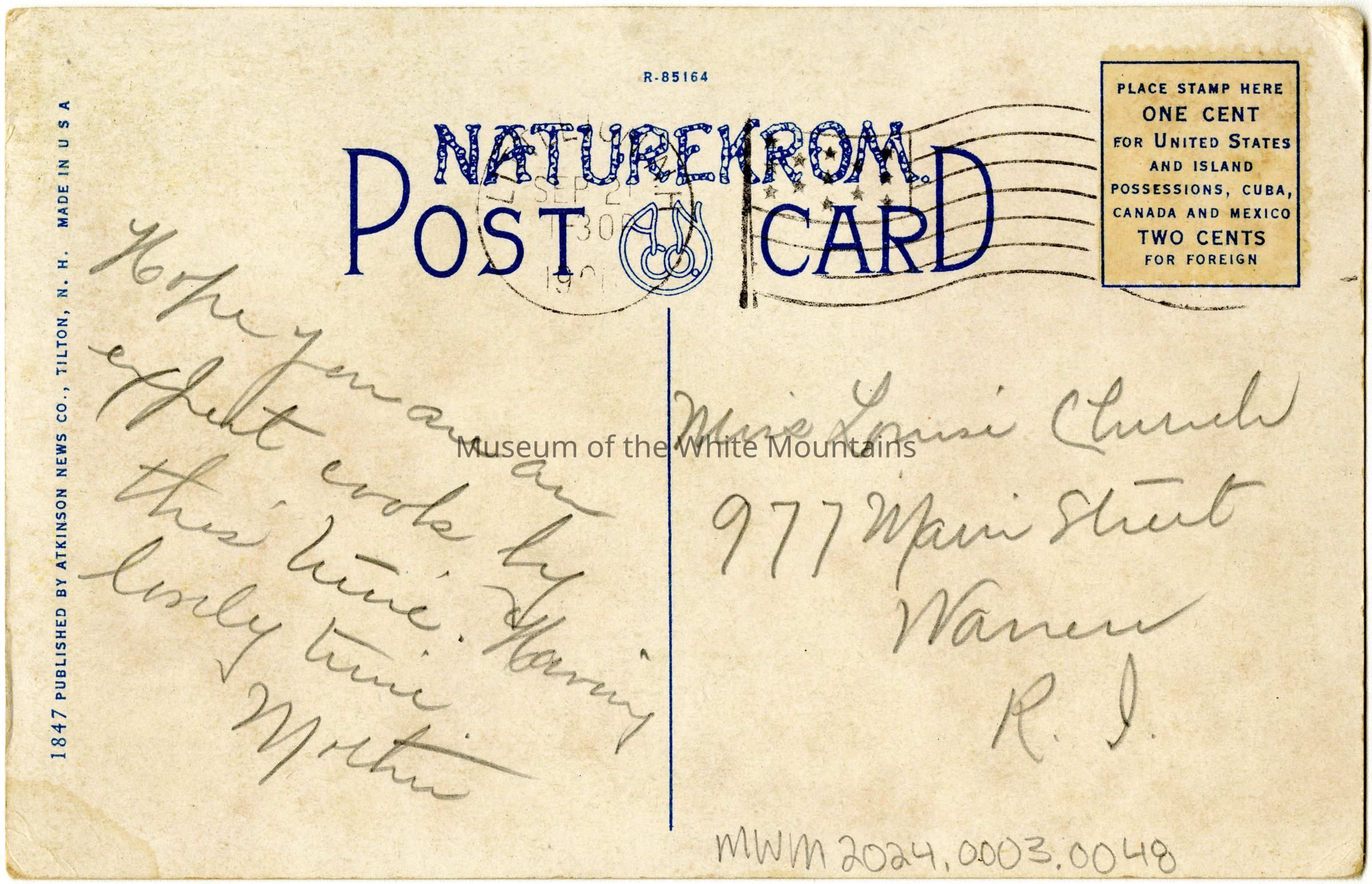 Divided "NATUREKROM" postcard back. Postmarked from Littleton, NH on September 2, 19[01]; 1:30pm.