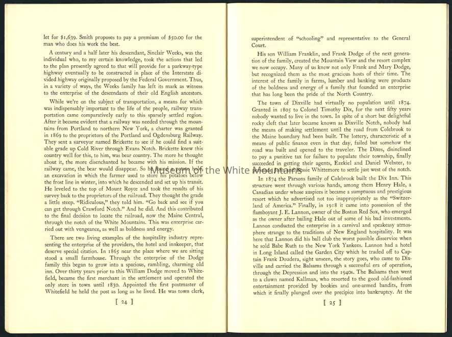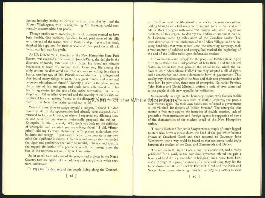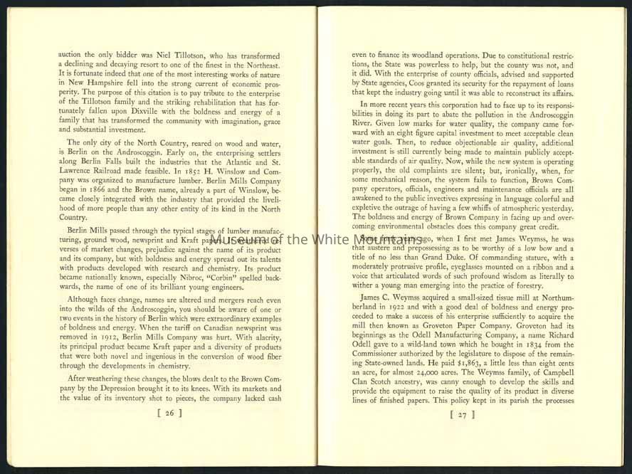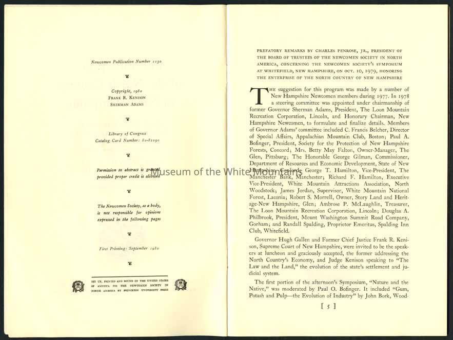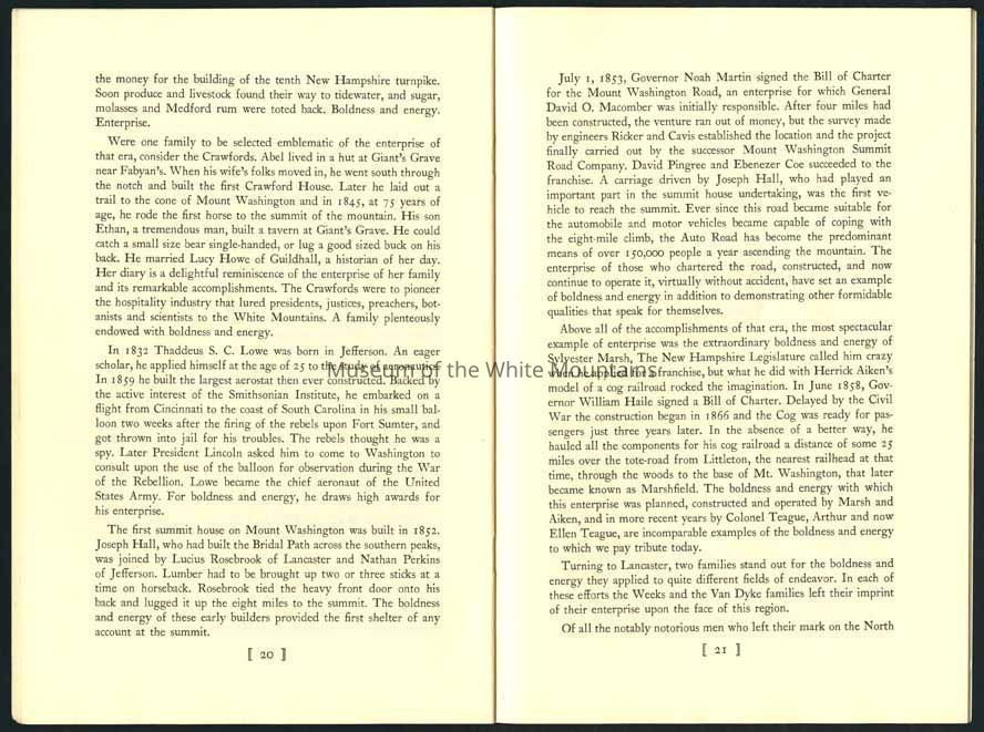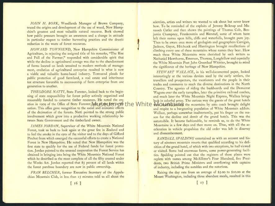 Newcomen Society of the United States, Mountain View House (Coos county, New Hampshire : inhabited place), State of New Hampshire, Appalachian Mountain Club, Society for the Protection of New Hampshire Forests, The Glen (Coos county, New Hampshire : inhabited place), Department of Resources and Economic Development, Manchester Bank, White Mountains Attractions Association, White Mountain National Forest, Story Land (Carroll county, New Hampshire : inhabited place), Heritage-New Hampshire (Carroll county, New Hampshire : inhabited place), Mount Washington Auto Road, Spaulding Inn (Coos county, New Hampshire : inhabited place), Brown Paper Company, Commission of Agriculture, New Hampshire Historical Society, Historical New Hampshire, New Hampshire State Parks, Environment
