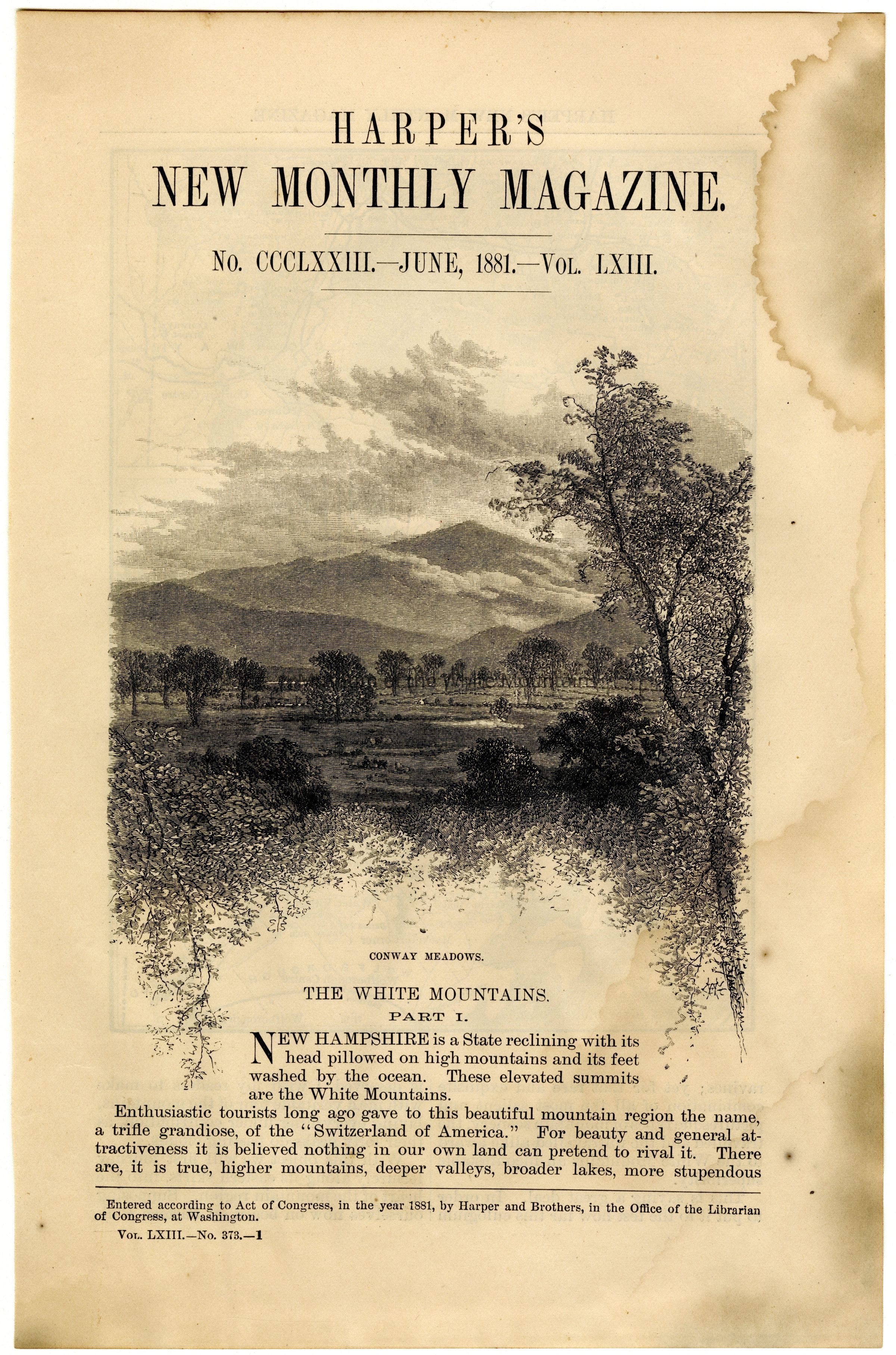 HARPER'S NEW MONTHLY MAGAZINE. / No. CCCLXXIII.- JUNE, 1881.-Vol. LXIIIEntry/Object ID