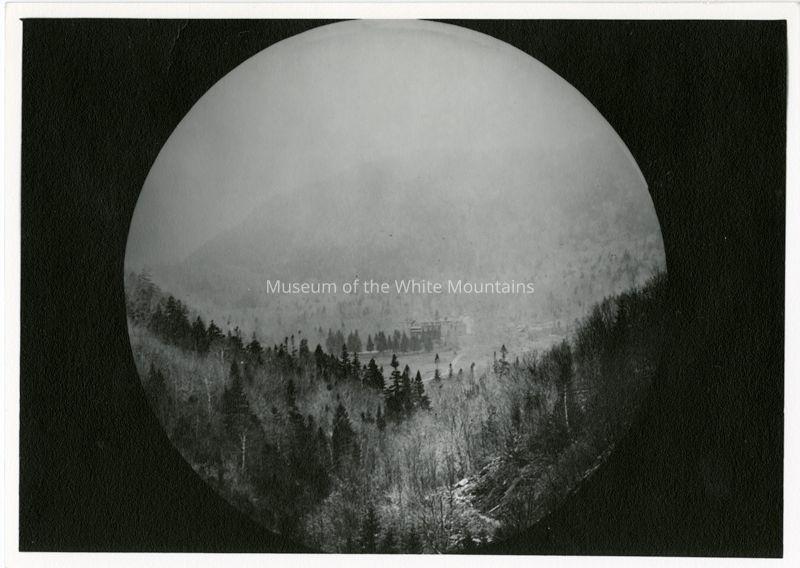 Aerial photograph of Dixville Notch overlooking the Balsams Hotel.