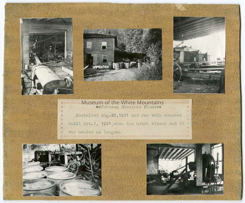 Multiple images of both interior and exterior of the Balsam Hotel's electric plant which was built in August of 1921.